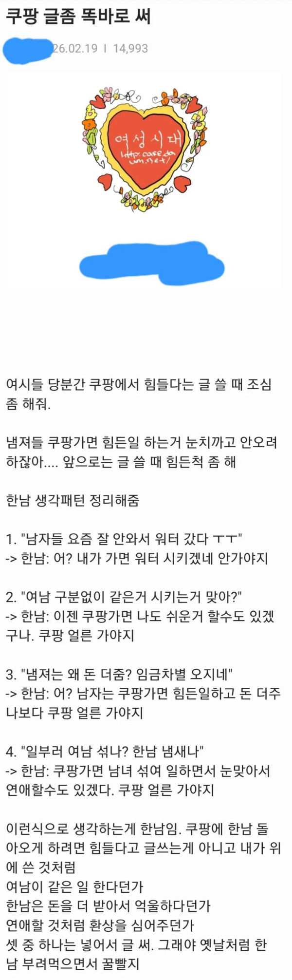 쿠팡 글 좀 똑바로 쓰라는 여시