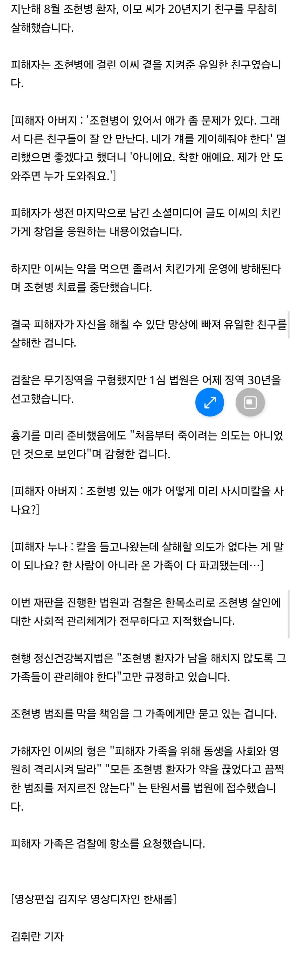 먹으면 졸려 조현병 약 끊고 20년지기 유일한 친구 살해…징역 30년 작성자 정보 이순신 작성 작성일 2026.02.21 14:03 컨텐츠 정보 52 조회 목록 본문 https://tv.naver.com/v/94500681 관련자료 이전 속보 트럼프 관세 위헌 판결 작성일 2026.02.21 14:03 다음 왜 내 메달을 아저씨가 시발. 작성일 2026.02.21 13:04 댓글 0 등록된 댓글이 없습니다. 로그인한 회원만 댓글 등록이 가능합니다. 목록