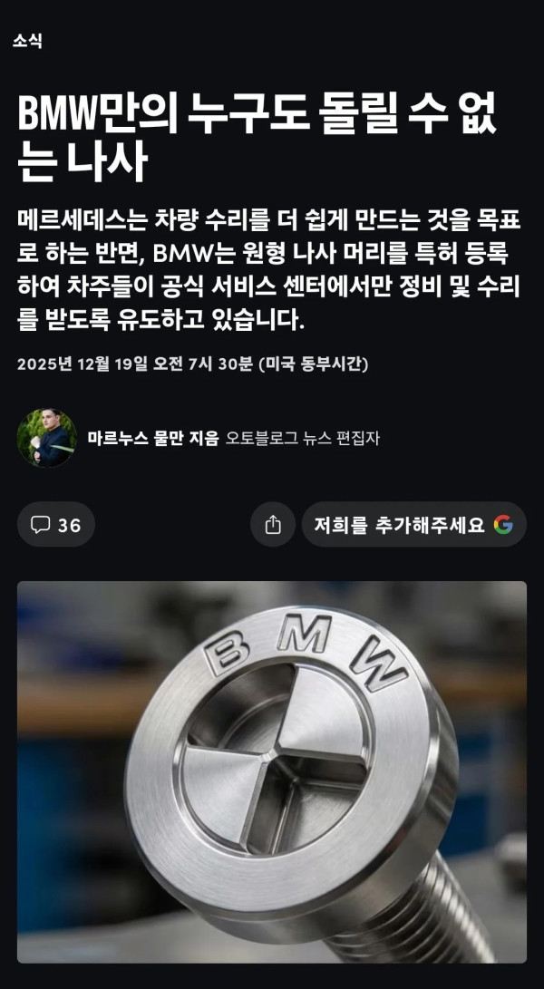 "BMW 전용 볼트"를 도입할것을 천명함...