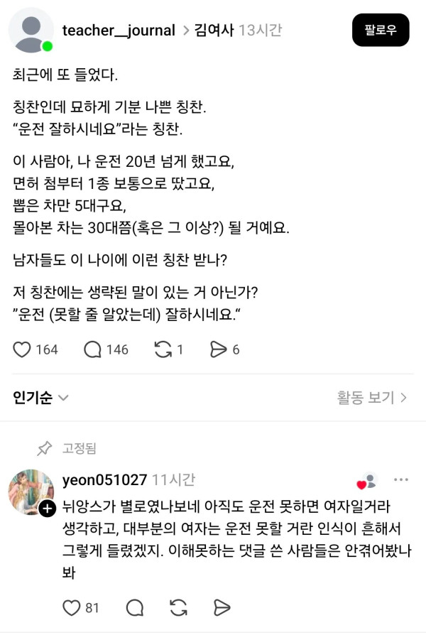 ㄹㅇ 운전 재미있긴 한데 잘한다는 소리 듣기 부담스러움